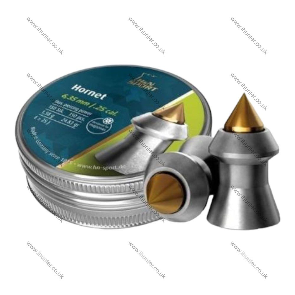 Medium-weight, accurate hunting pellet for medium ranges. High impact and penetration. Aerodynamic design through metal tip. Controlled expansion. Smooth with brass tip