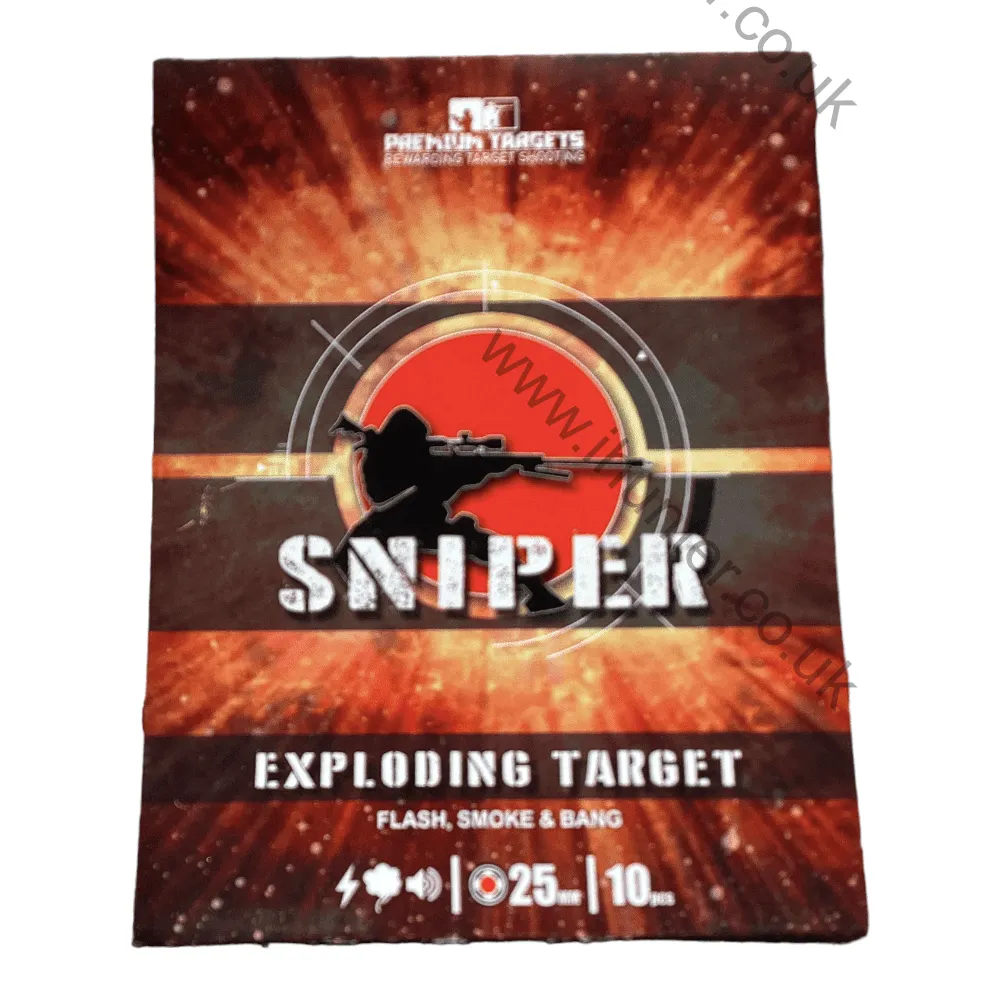 The Sniper Targets are small and lightweight, with a 25 mm diameter. Target delivers a satisfying result upon a direct hit of light, smoke, and bang. The Sniper targets have a self-adhesive backing that makes it easy to stick them on any dry hard surface. Varying results based on the backing material.