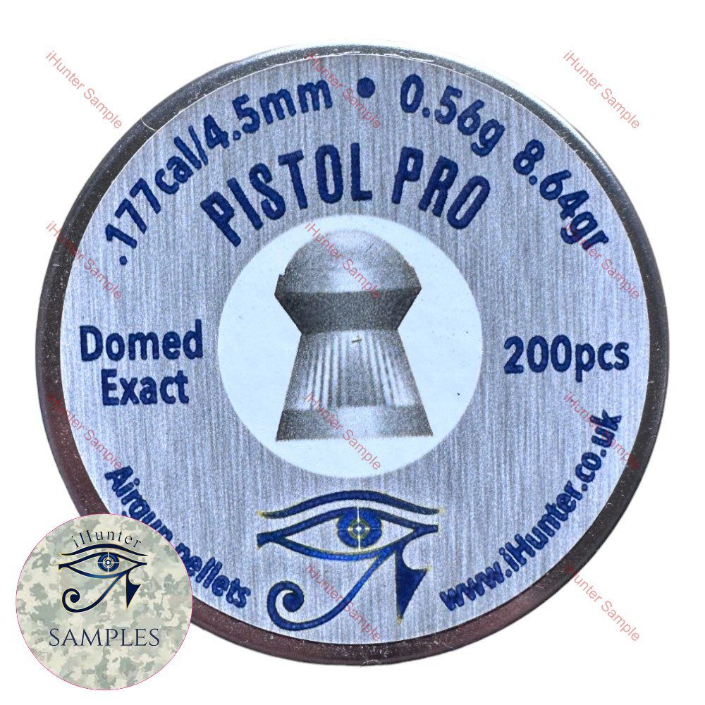 Sample tin of Pistol Pro Domed Exact .177 Pellets - 50 pellets in a high quality protective labelled screw top tin.